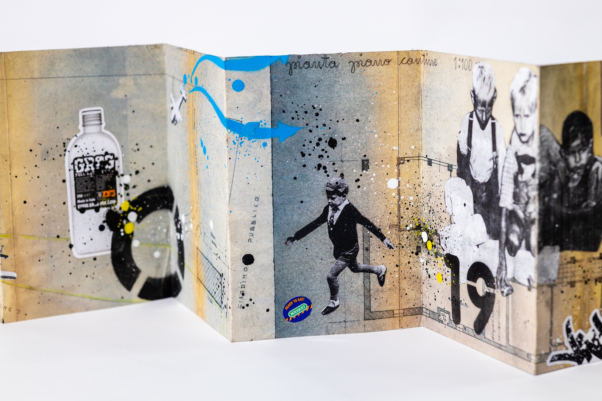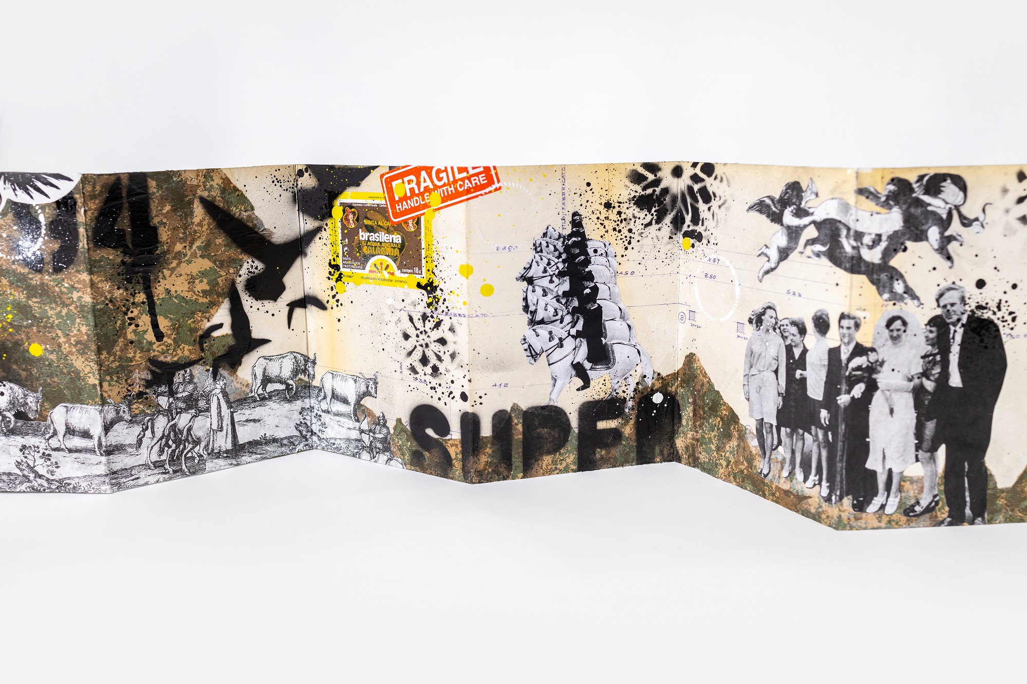 Per il progetto collettivo e itinerante “Atlanti di Babele”, Massimo Sirelli presenta i suoi libri d’artista, oggetti unici a forma di leporello realizzati a mano attraverso materiale di scarto riassemblato tramite processi artistici e artigianali.