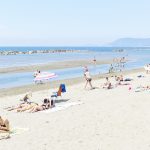 Tra le altre fotografie scattate in quei mesi del 2020, le prime immagini catturate sui litorali vicino a casa (Foce del Serchio Mirage e Marina di Massa capannina bianca - Vogue hope) sono molto lontane dall'esuberante vitalità dei precedenti scatti di assembramenti di vacanzieri. La smania di libertà si mescola allo spettro di una nuova chiusura. Lungo la battigia poche persone si muovono timidamente o prendono il sole in gruppi piccoli e ben distanziati. Il paesaggio naturale acquista ariosità a dispetto delle minute geometrie dei corpi, una sapiente misura regola la composizione, un equilibrio tra cielo, mare, terra e persone.