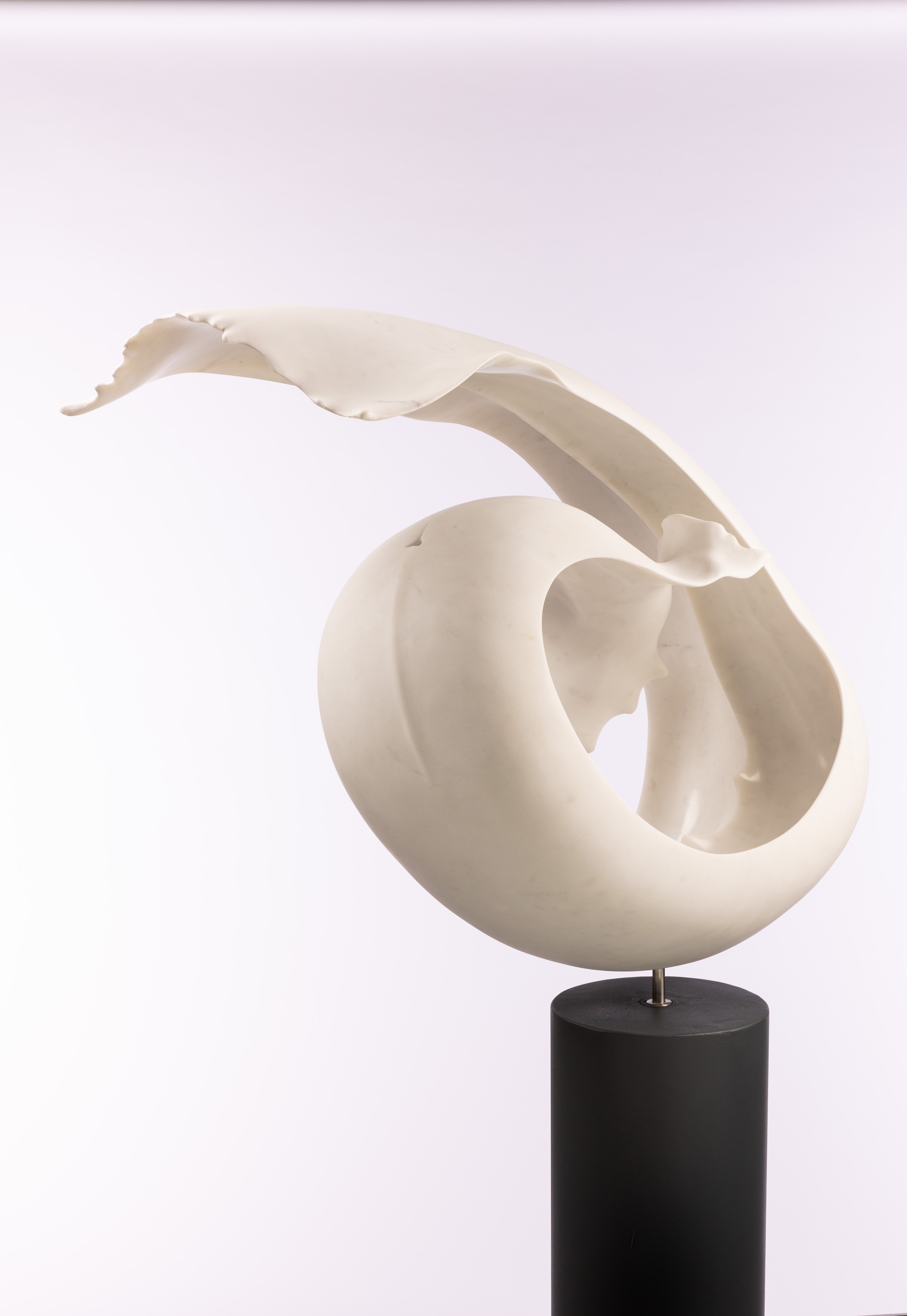 Le sculture di Angelo Brugnera si presentano come ibridi che sublimano il realismo della rappresentazione con l’astrattismo definibile come “organico”. Alla base c’è un’elaborazione formale di grande sapienza e raffinatezza tecnica, con un’approfondita conoscenza della tradizione della scultura del passato. Nella quale l’artista parte da una sensazione, da una condizione fisica destinata poi a trasferirsi nella materia. Il marmo diventa carne, pelle, esperienza tattile viva. Superfici lucide e levigate si giustappongono ad altre ruvide e scabrose, con certe volutamente aspre e nodose. Forme chimeriche originate da ibridazioni genetiche, con le quali l’artista pare ammiccare alla transitorietà della condizione umana. Con un’ironica critica ai modelli di sviluppo contemporanei, alle contraddizioni e ai disagi della società. Ma l’artista non cerca la meraviglia, piuttosto vuole rendere ‘credibile’ il suo mondo visivo.