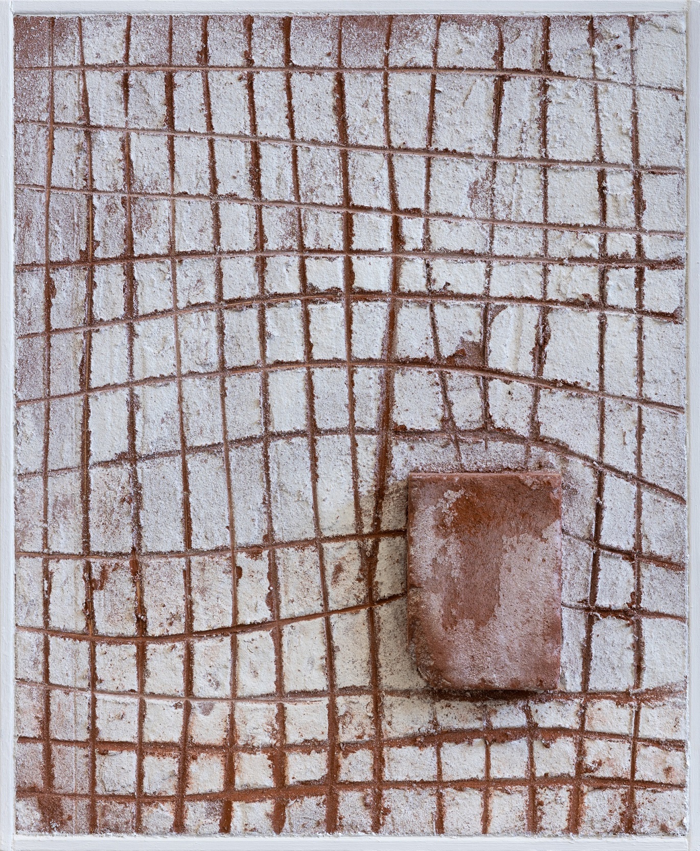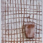 Le opere di Lorenzo Cecilioni potrebbero essere sculture da parete, ma anche dipinti da pavimento. Formalmente presentano forti dinamiche fra linee, spazi e campiture cromatiche, con l’utilizzo di una vasta gamma di materiali, dal legno al piombo, dal marmo al sale. Ma per l’artista la materia diventa un medium per evocare il proprio vissuto, strettamente connesso al mare. Dove è nato e sempre vissuto. Immaginando di vederle in orizzontale, diventano delle mappe, con le scansioni spaziali che paiono richiamare paesaggi marini. Delle rappresentazioni grafiche della memoria. Nelle quali la commistione e le reazioni fra i diversi materiali introducono attesa e manifestazione, palesamento di un atto creativo dalla connotazione quasi alchemica.