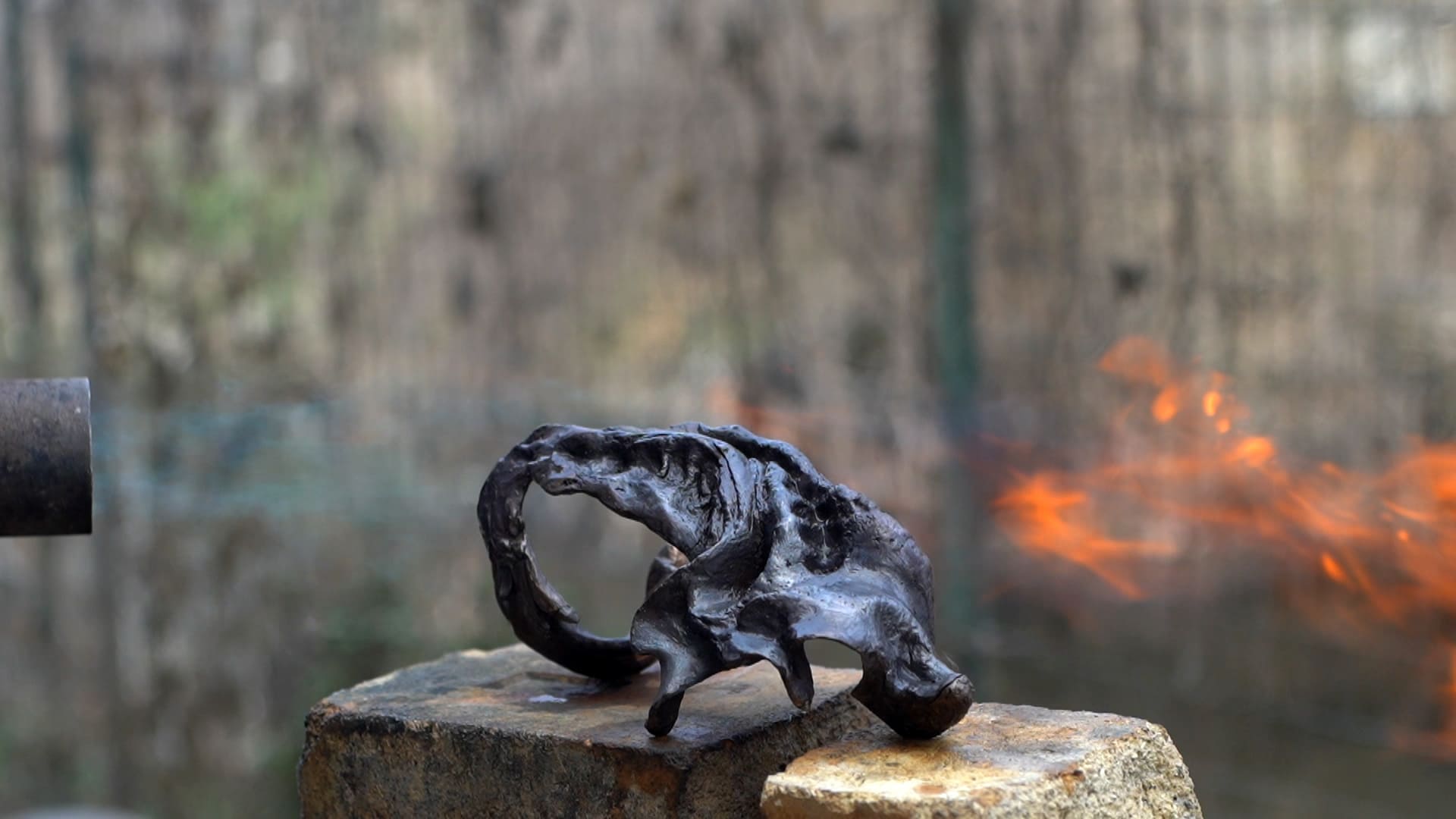 La mostra si apre con un video di un cielo in tempesta, nuvole animate da scariche di lampi, in un ambiente illuminato ad intermittenza in cui forme e materiali sono in dialogo con le proprie ombre e i propri riflessi. L’artista crea un paesaggio mentale generato da un intreccio di tessuti portanti in cui sono trattenuti ricordi, desideri e immagini che trovano forma in figure abbozzate o dettagliate. Le sculture di Matilde Sambo, infatti, sembrano essere frutto di spirali fisiche e di pensiero in grado di modellare bronzo, vetro e terracotta; materiali vivi in cui esseri in movimento legati all’inconscio sono fermati in un attimo di creazione.