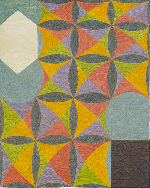 La pittura di Matt Phillips emerge lentamente, attraverso un delicato processo creativo che ricorda da vicino la dinamica musicale, in un crescendo di intensità velatura su velatura di colore. Visioni orfiche, in cui echeggiano da lontano alcuni pattern di Sonia Delaunay, prendono forma nel corpus di lavori realizzati per la mostra, una trentina di tele di medie e grandi dimensioni. I loro titoli suggeriscono intense narrazioni, che si dipanano lungo geometrie rigorose definite tuttavia “figurative” dall’artista stesso. L’immagine dipinta non riempie quasi mai totalmente la tela, ma cerca autonomamente il proprio spazio all’interno del supporto, che diventa puro margine.