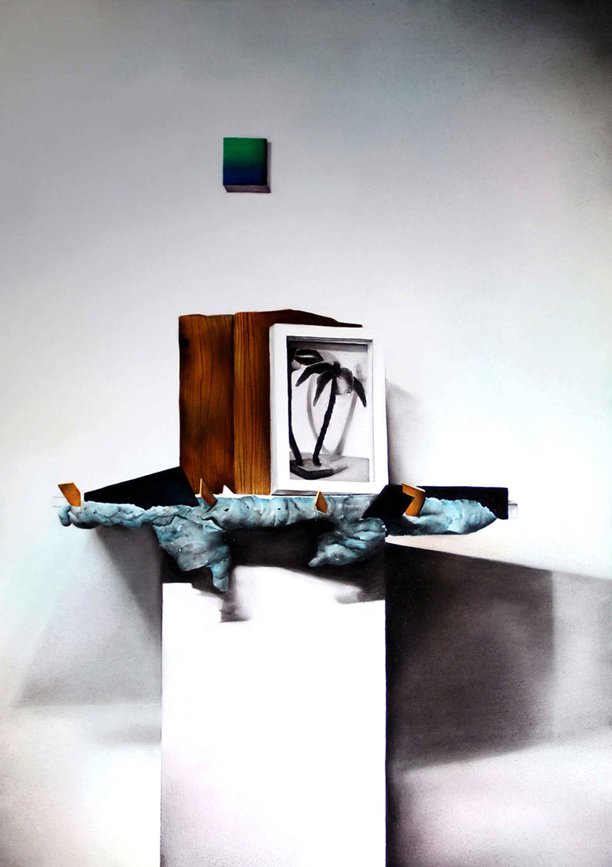 La memoria, che la materia restituisce come informazione e testimonianza, è al centro dell’indagine che Matteo Antonini presenta in Dimora Artica. Diversi oggetti, rappresentati con un’accurata pittura ad olio, sono uniti dall’artista in bizzarre composizioni.