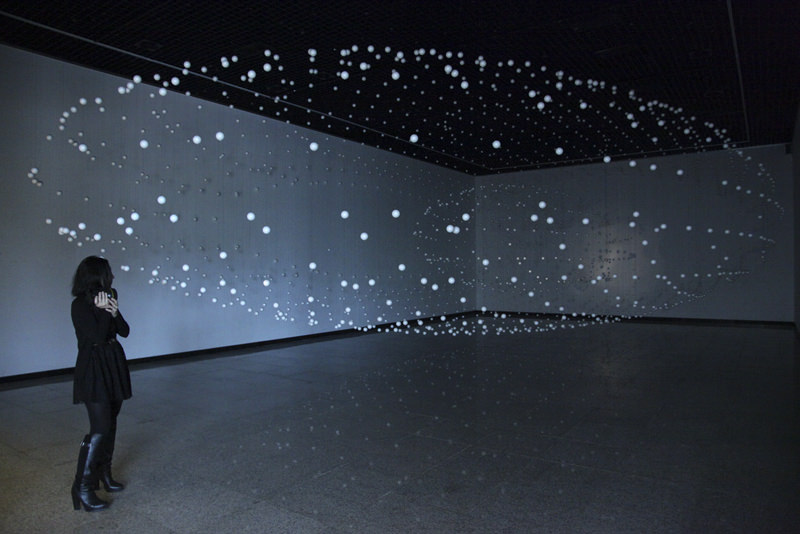 Il lavoro di Matteo Berra, quindi, costituisce il tentativo di rappresentare l’inconoscibile: quest’ultima installazione realizzata per la mostra Materia Oscura, che viene a seguire due lavori concepiti interamente in Corea del Sud - il primo, un’opera di land art costruita nello specchio di una laguna per la biennale di Busan, intitolata New Birth, New Star, e il secondo prodotta per lo Yeongcheon Art Studio, dal titolo significativo A failed attempt to built a galaxy - si misura nuovamente con lo sforzo di rappresentare l’universo. La grande Nebula costruita nel centro dello spazio della galleria prova a dare forma e una concrezione estetica alla materia oscura, ovvero quella stessa sostanza che, per sua natura, è la forma dell’inconoscibile. Dunque il lavoro di Berra sceglie di confrontarsi con un’idea limite della scienza contemporanea, che racchiude un atteggiamento filosofico ben preciso sulla conoscenza del mondo da parte dell’uomo.