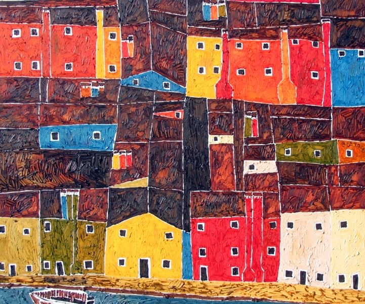 Il ciclo pittorico delle "Case danzanti" scopre l’anima della città facendo rivivere gli edifici, antichi e non, facendo trasparire i pensieri, la vita, i sogni di coloro che vi hanno trascorso all’interno parte della loro esistenza. Centri storici come entità viventi, scomposti e ricomposti, in parte reinventandone l’assetto, case che si rianimano, come in un infantile girotondo, intrecciando il loro destino con le voci, le idee, i suoni, il bisbiglio dei loro abitanti passati e futuri. Sulla tela rivivono le loro sensazioni, i sorrisi, le emozioni, gli attriti e gli amori. Sono case arroccate, inerpicate, le une sulle altre, aggrappate alla roccia e al tempo, come fossero le tessere di un fragile e raffinato mosaico. Sono case in cammino, che vorrebbero volare, che vorrebbero danzare la loro storia; case che si ribellano perché private di calore e di voce, svuotate di umanità, di quei mille minuti mestieri che le rendevano vive, trasformate invece in merce, semplice e freddo oggetto di profitto. Dipingerle significa far parlare questi edifici, queste città, e attraverso il colore e la sua matericità dare loro voce, rendere limpido il dialogo con il passato, con le ragioni del costruito. E così i colori diventano i loro e i nostri stati emotivi, sono l’impatto e il graffio con il tempo, sono il vento che scuote la mente intorpidita, la poca capacità critica, sono la rinuncia ai gesti conformati, ai suoni senz’anima, alla non comunicazione, alla standardizzazione delle idee e dei consumi, sono sogni e progetti, sono musica, sono il sole che accompagna la nostra vita.
