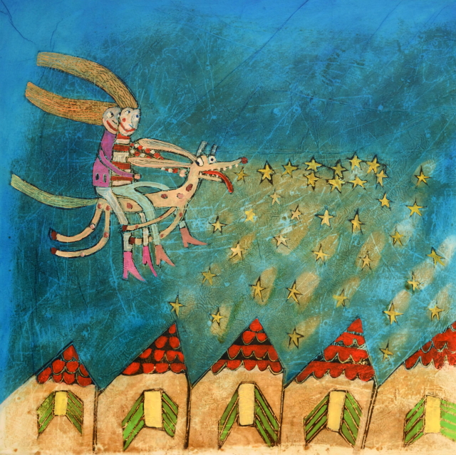 Paesaggi trasfigurati dal sogno, notturni, coppie che abitano in castelli sopra le nuvole, personaggi volanti di ispirazione chagalliana, mongolfiere coinvolgeranno lo spettatore a tal punto da proiettarlo all’interno del mondo di Matteo Cocci e Michele Fabbricatore