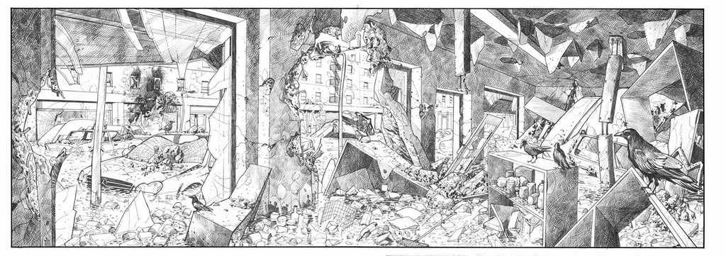 Con lucidità analitica e precisione grafica Matteo Cremona cattura l’istante in cui le grandi città moderne, una volta che viene a mancare quella tecnologia da cui al giorno d’oggi tutto dipende, implodono su se stesse: così grattacieli, supermercati, autostrade, uffici e stazioni della metropolitana sono distrutti, fumo ovunque, ogni barlume di vita frantumato. Uno scenario apocalittico in cui ormai l'uomo, mai raffigurato, non detiene più alcuna autorità e viene completamente sopraffatto da tutto ciò che fino a quel momento lo aveva supportato.