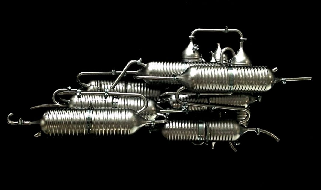 Sculture aventi identità olfattiva. Assemblaggi in alluminio con diffusori di feromoni ci suggeriscono una prospettiva inattesa del lavoro visionario di Emery, un contrasto che sottolinea come l’aspetto intimidatorio non sia funzionale allo scopo: infondere amore stimolando chemiorecettori.