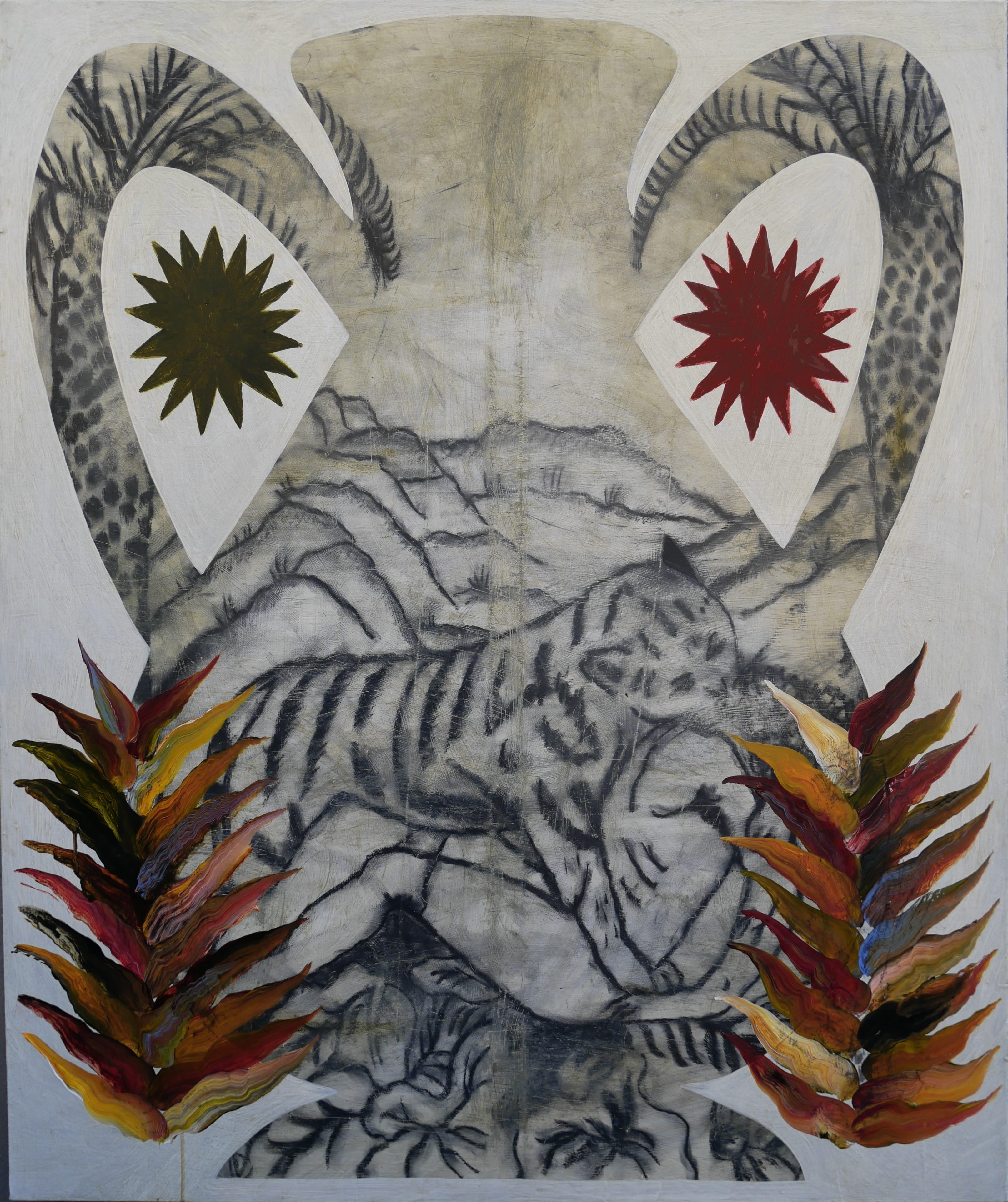 Natura Prepotente, un progetto site-specific che trasforma lo spazio espositivo in un’esperienza immersiva. Piante, animali selvatici e creature ibride si impossessano letteralmente dello spazio espositivo, espandendosi sulle pareti e inglobando lo spettatore in un universo vibrante e indomabile.