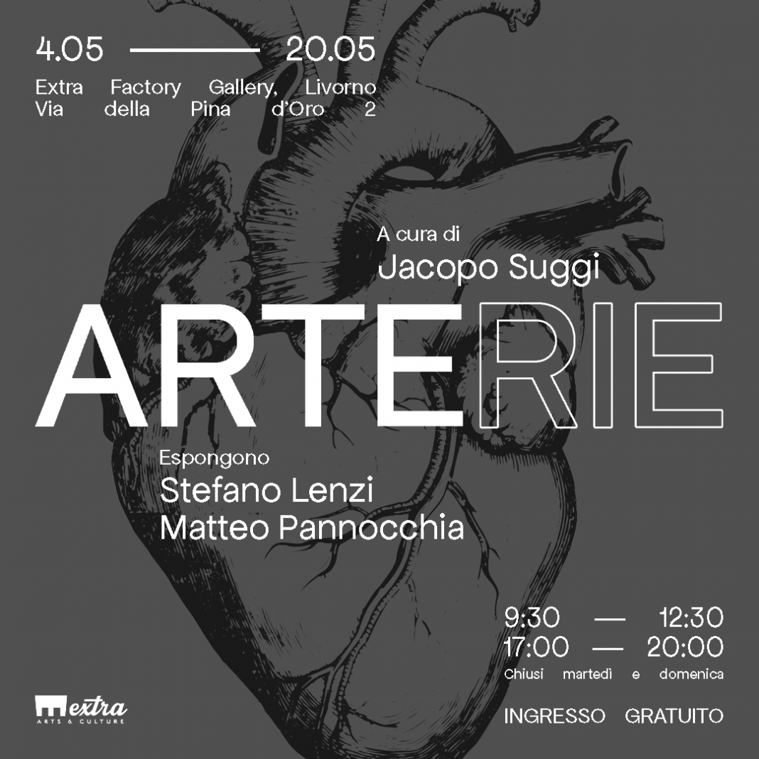 Inaugurerà giovedì 4 maggio alle ore 18 e resterà aperta fino al 20 maggio, presso la galleria Extra Factory a Livorno la mostra Arterie, in cui esporranno i due talentuosi artisti Stefano Lenzi e Matteo Pannocchia. L’esibizione è curata da Jacopo Suggi. Il programma di mostra prevede un ricco calendario di eventi, tra conferenze, performance artistiche e iniziative musicali.