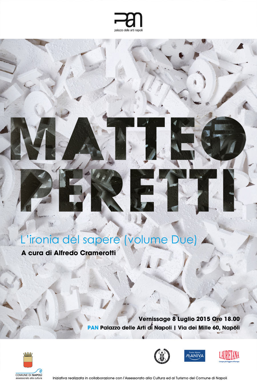 L'Ironia del Sapere (volume Uno e volume Due) è il titolo della doppia retrospettiva dedicata alla produzione artistica di Matteo Peretti, presentata presso Palazzo Collicola Arti Visive di Spoleto, dal 27 giugno al 27 settembre, a cura di Gianluca Marziani, e dal 8 luglio al 31 luglio presso il museo PAN, Palazzo delle Arti di Napoli, a cura di Alfredo Cramerotti.