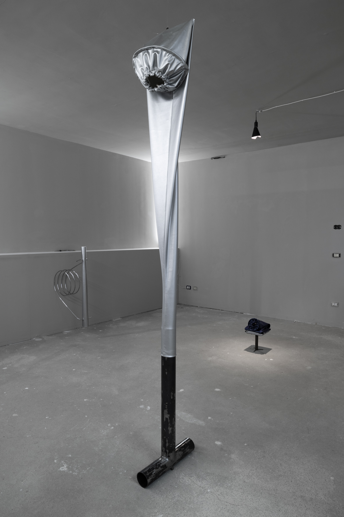 L’esposizione riunisce un nuovo corpo di opere sviluppate in relazione alle peculiarità spaziali e alla storia di FuturDome, attivando un cambiamento di intensità temporale che comporta una riduzione del presente.