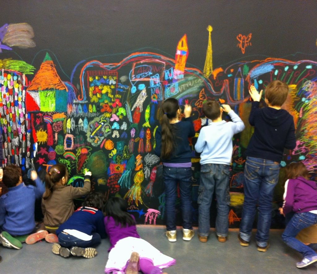 scuole primarie di Bergamo, a intervenire con dei gessetti colorati cercando di immaginare l’aspetto del mondo