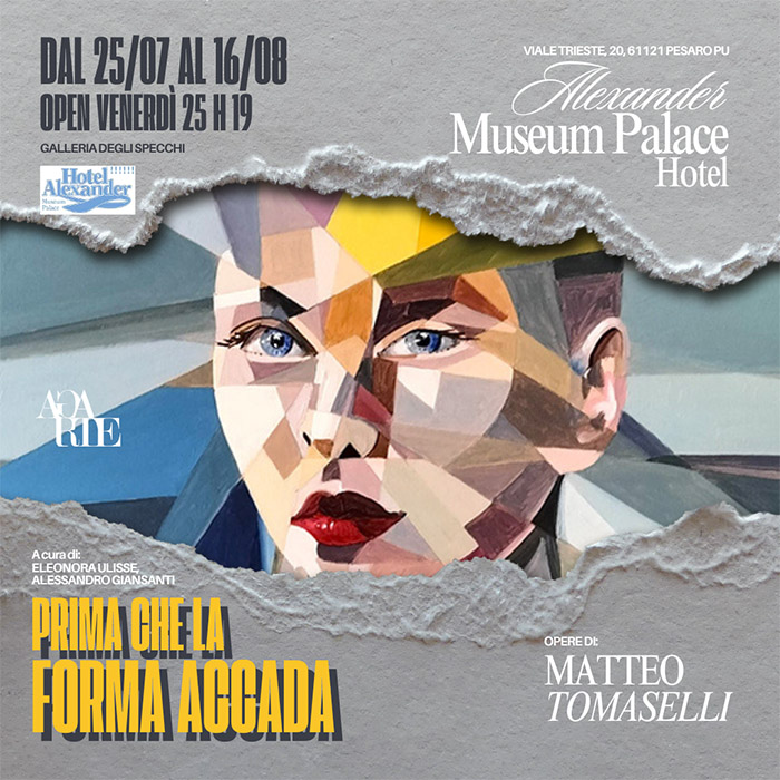 Mostra personale del percorso pittorico selezionato dalla produzione maturata durante gli anni dall’artista Matteo Tomaselli presentato da Agarte – Fucina delle Arti, galleria d’arte ed associazione culturale di Frascati (RM), a cura di Eleonora Ulisse, con la nota introduttiva di Alessandro Giansanti, il progetto espositivo si realizzerà su invito del Conte Alessandro Marcucci Pìnoli di Valfesina presso il Suo Alexander Museum Palace Hotel.