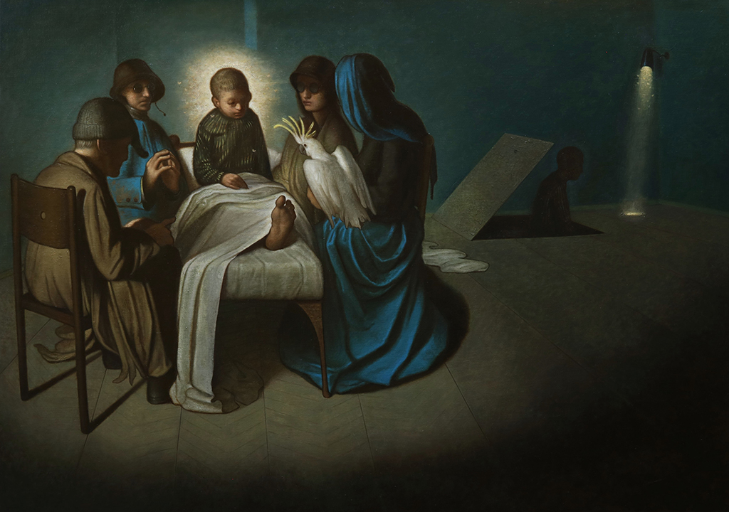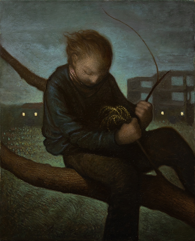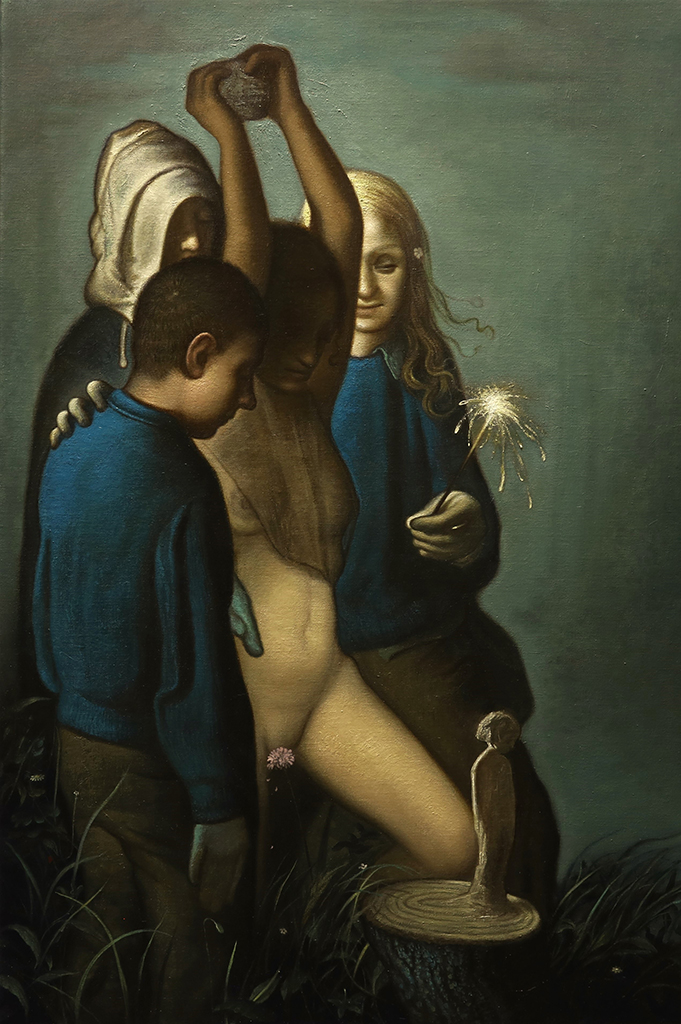 I rimandi simbolici ed espressionisti del giovane pittore, uniti ad uno stile naturalistico e virtuosistico dal punto di vista formale, creano un cortocircuito che apre un varco tra realtà e inconscio.