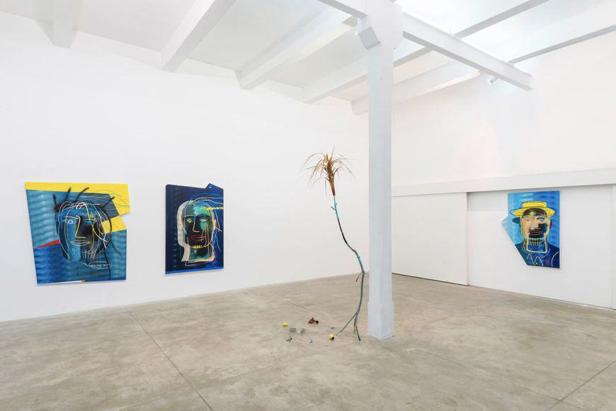 I due lavori in mostra, “ Monico” (2018) e “ Mattinzio” (2018), dunque, si propongono di essere insiemi coordinati di elementi tesi a costruire un completo sistema di segni e supporti, siano essi di natura scultorea o pittorica, per un ironico schema costituente della variante architettonica verticale. Elemento della celebrazione e struttura portante dell’ambiente che abita, questa sorta di intelligenza lineare che unisce terra e cielo, si palesa in un matrimonio visivo che esplicita il binomio estetico, talvolta opposto, ma che trova una forte coesione di senso nella premessa ontologica.