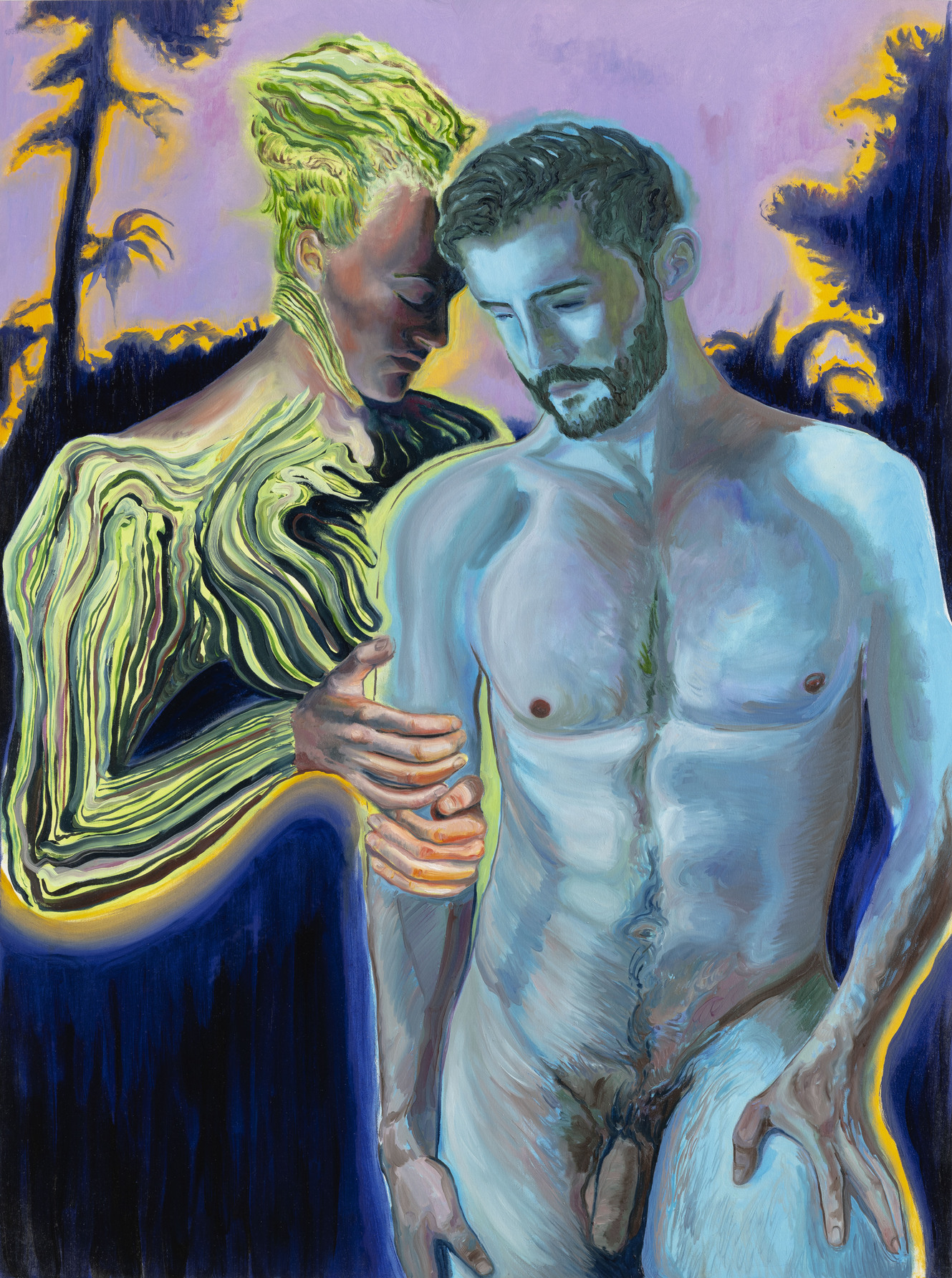 Attraverso la sua pittura ad olio cerca di cogliere qualsiasi elemento, non sposando un solo stile. Inizialmente concentra la sua ricerca pittorica sui volatili, elemento molto riconoscibile nelle sue prime opere. La sua produzione poi muta ed evolve, ispirato, oltre che dal passato, da autori contemporanei che toccano tematiche come quelle del queer, spinto da un desiderio e una necessità di volere parlare di altro, di determinate condizioni sessuali, di determinati stati d’animo, di un certo malessere, isteria, e falsa gioia, di un narcisismo tragicomico. “Anche la robotica, gli androidi mi affascinano. Mi piace immaginare potenziali personaggi e corpi del futuro. Anche il tema della violenza ha una parte fondamentale nel mio lavoro, che poi si scontra con la componente buffa, con quella melanconica o con quella ironica”. Nei suoi lavori rappresenta un mondo fatto da personaggi dall’identità ambigua, non uomini e nemmeno donne, malinconici e distaccati ma in cerca di un dialogo aperto con lo spettatore, elaborati da disegni digitali, trasposti pittoricamente con pennellate morbide e fluide, e con colori dalle tonalità intense e graduate.