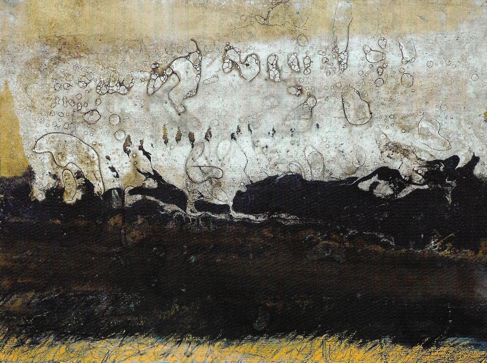 Pasquale Fameli 'La natura sulla soglia dell’immagine.Maurizio Bottarelli' ‘La sensazione di un accadimento incontrollabile pervade la più recente produzione di Maurizio Bottarelli, intento ancora a interrogarsi sulla conflittualità del rapporto tra l’uomo e la natura. Le sue immagini sembrano quasi emulare la tensione lenta e continua dell’orogenesi, rielaborare i suoi processi e schiuderne l’energia.La materia, con le sue porosità e le sue effervescenze, aderisce alla superficie della tela o della carta e la satura, generando la propria atmosfera ma negando, al contempo, ogni accenno di profondità.’