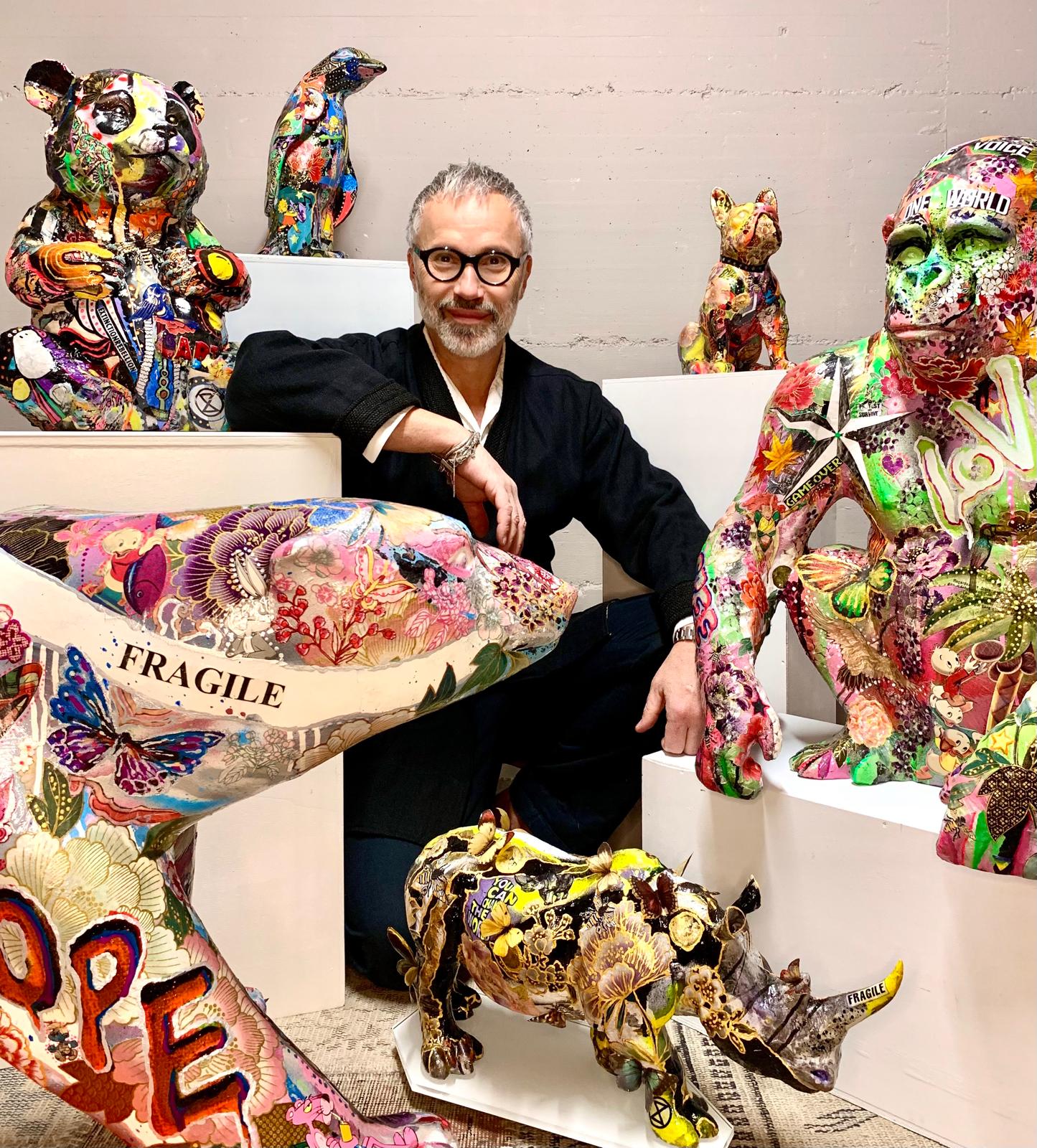 Le opere dell’artista, sono vere e proprie ambasciatrici di messaggi di salvaguardia del pianeta dove gli animali ne sono i custodi. Non importa se la scultura è rappresentata da un bulldog, da un rinoceronte, da un panda, da un gorilla, da un orso, da un pinguino, ognuno di loro esprime, essendo animale, lo stesso pensiero: la strumentalizzazione dell’uomo verso la natura che mette a rischio la loro sopravvivenza.