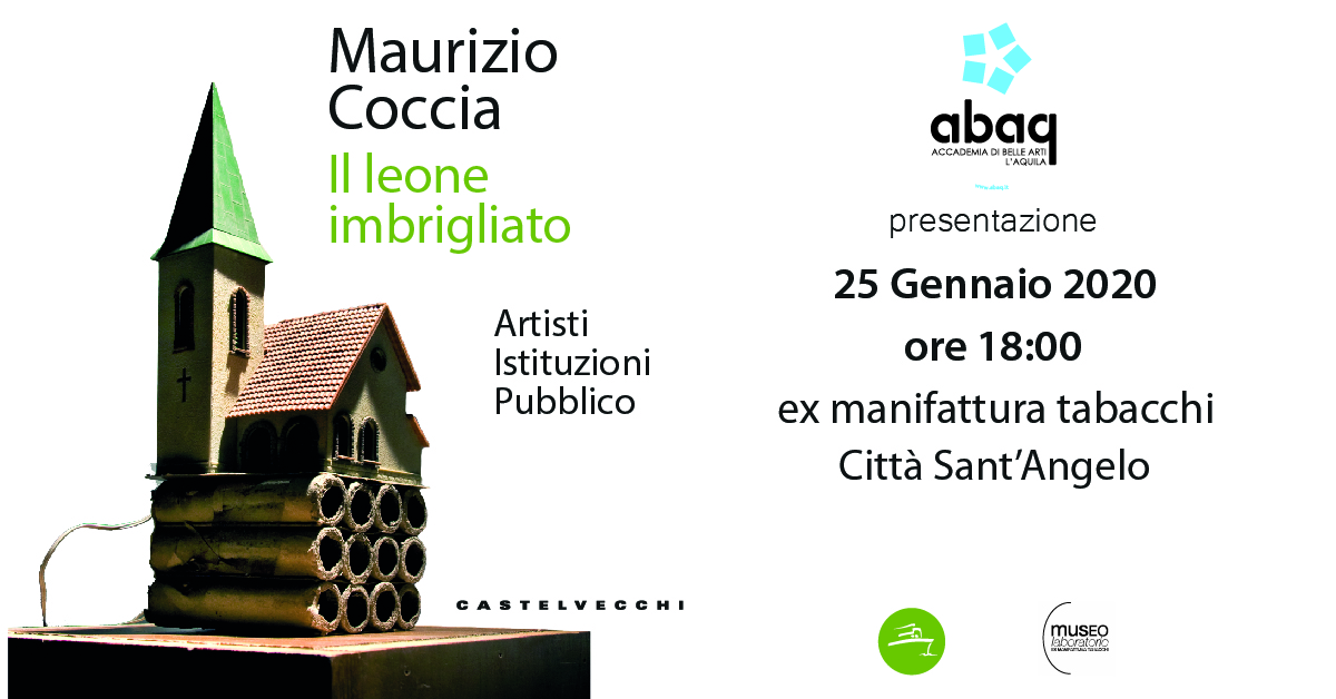Sabato 25 gennaio alle 18:00, nell’ambito delle attività propedeutiche all’apertura di una succursale dell’Accademia di Belle Arti dell’Aquila a Città Sant’Angelo (PE), il Museo Laboratorio Ex-Manifattura Tabacchi presenta il libro di Maurizio Coccia Il leone imbrigliato. Artisti Istituzioni Pubblico (Castelvecchi 2019), alla presenza dell’autore e del Direttore dell’Accademia Prof. Marco Brandizzi.