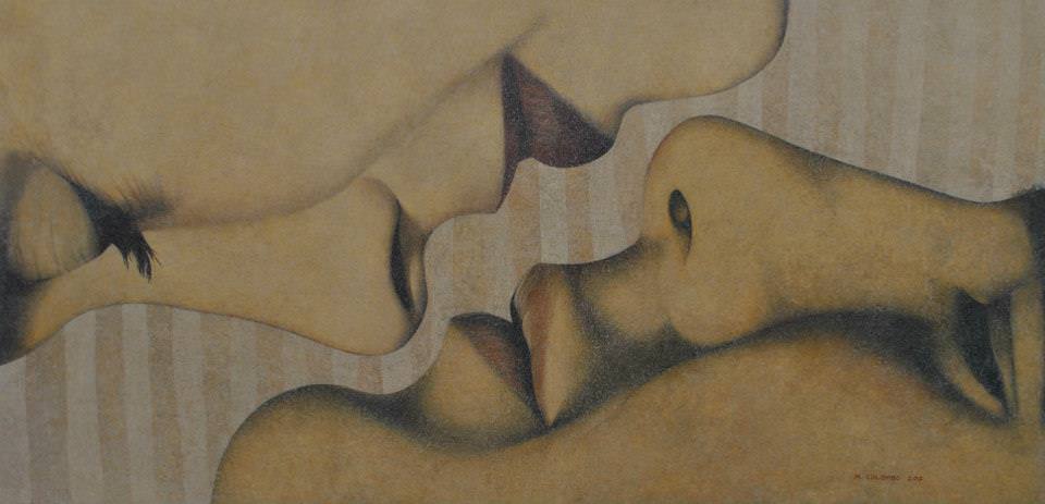 La produzione di Maurizio Colombo è caratterizzata da un fil rouge che affonda le sue radici nella figurazione classica, da lui interiorizzata in anni di studio fino a far propri sia le più raffinate tecniche pittoriche, dallo sfumato alla resa anatomica, sia i vasti repertori dell’arte, dall’antica alla contemporanea. A queste conoscenze sono andati nel tempo sovrapponendosi studi in Sociologia dell’Arte ed in Filosofia Morale. Il dilatarsi del suo bagaglio estetico è frutto anche dalla sua attività di grafico - pubblicitario, tenuto ad anticipare le esigenze del mercato. Si sono pertanto acuite in lui le capacità di decodificare il reale e di far proprie tutte le sollecitazioni provenienti dal mondo circostante.