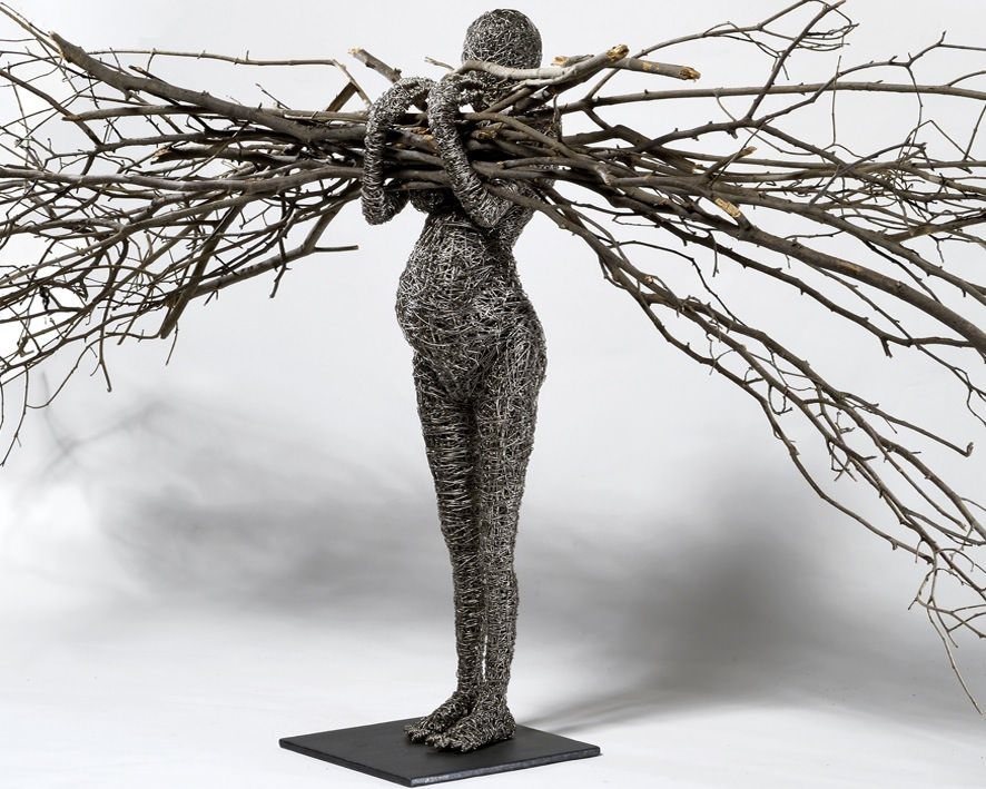 Il filo di ferro è l'anima del lavoro di Fabrizio Pozzoli, un intreccio che sembra non aver fine, un moto perpetuo che l'artista mette in atto "tessendo" e dando così forma a figure umane, senza caratteristiche somatiche, simbolo delle nostre molteplici identità, spesso annullate e disperse tra i grovigli della società contemporanea.