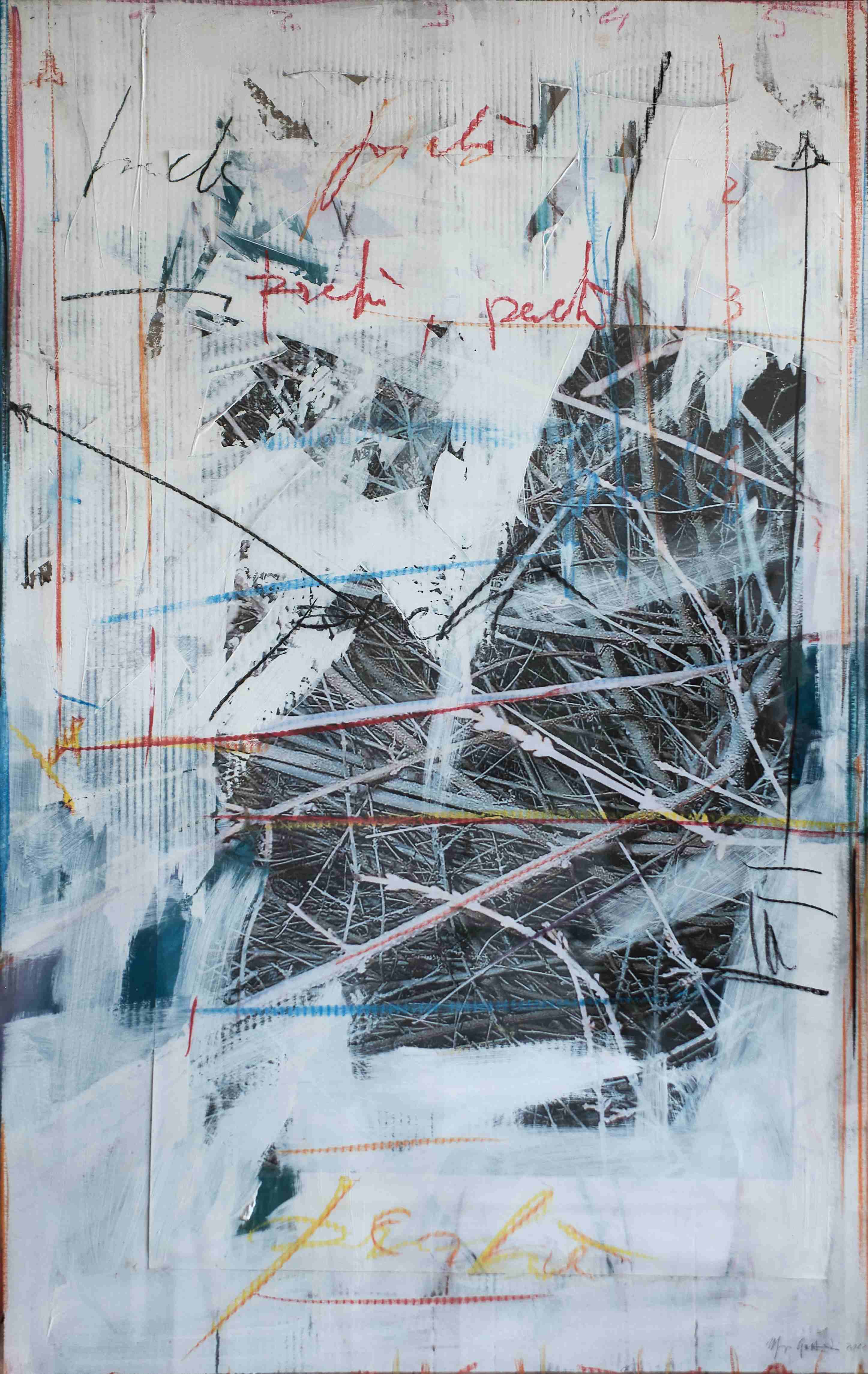 Affioramenti,istantanee, fotogrammi restituiti da una memoria più o meno volontaria, contemplati con accurata partecipazione e insieme con un intenso furore che fa pensare al suo “padre” artistico EMILIO VEDOVA.