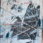 Sostanzialmente le sue opere, che si trattino di ricordi seminascosti che si fanno strada come radici del suo contorno terracqueo non vi è dubbio. E non ci sorprende invece come questi affioramenti, istantanee, fotogrammi restituiti da una memoria, più o meno volontaria, siano contemplati con accurata partecipazione e insieme con un certo intenso furore che fa pensare al suo “padre” artistico EMILIO VEDOVA.