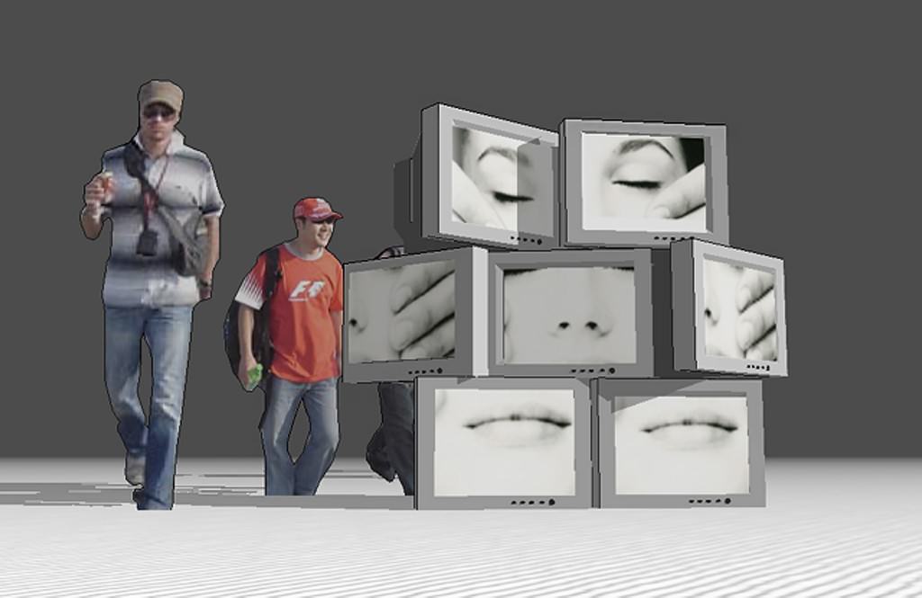 Una video-istallazione composta da monitor che ritraggono visi in movimento, che vuole
