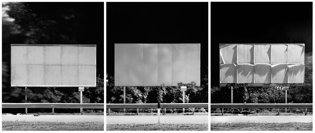 La serie proposta è frutto di un corposo lavoro di documentazione che riporta oltre 700 cartelloni pubblicitari vuoti e senza nessun tipo di messaggio da evidenziare.