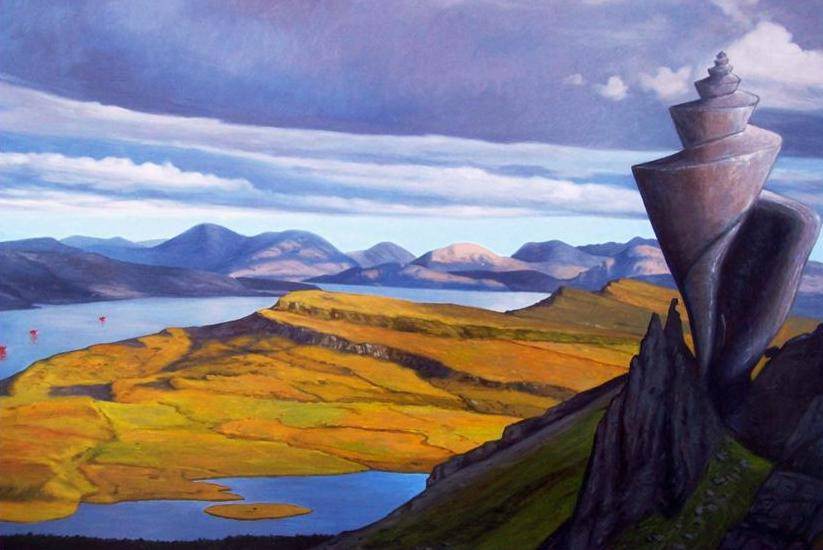 Una realtà vista attraverso la patina del sogno e del ricordo, espressa in una visione fantastico-surreale, utilizzando una accurata tecnica che trova la sua massima manifestazione nel colore limpido e luminoso.