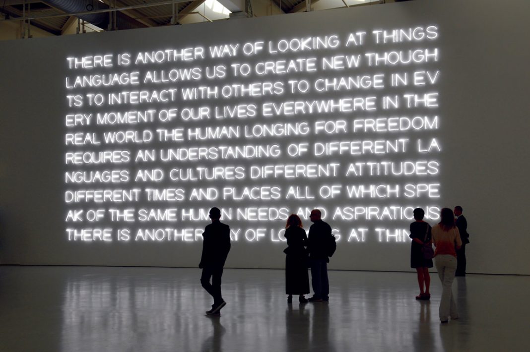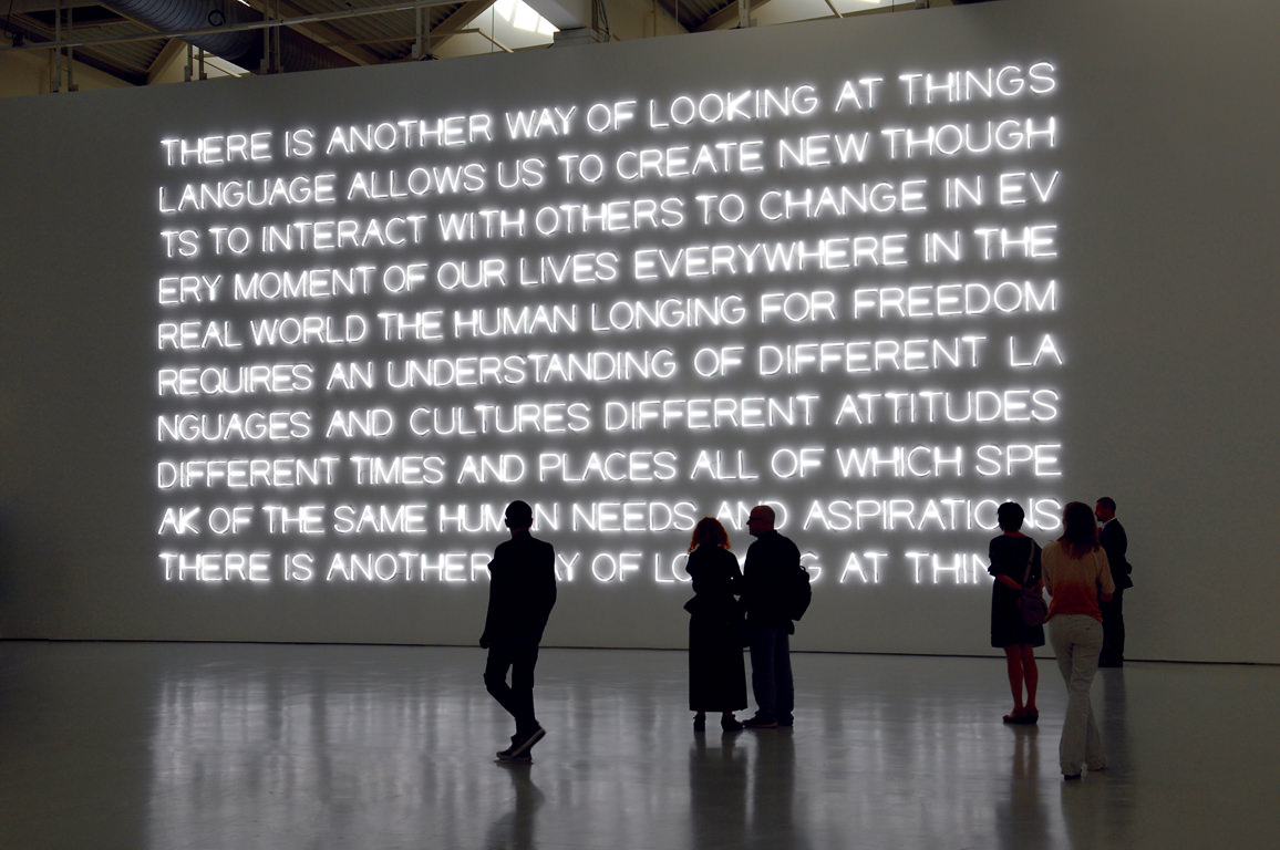 È dal 1967 (“Alfabetofonetico”) che Nannucci elabora una vasta antologia di testi in neon che creano un repertorio linguistico in cui una dimensione più varia di significati e una nuova percezione dello spazio instaurano un forte legame ambientale sia con l’architettura sia con il paesaggio urbano.