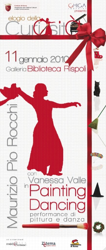 Maurizio Pio Rocchi proporrà la sua ‘pittura in azione’ utilizzando allo scopo suggestive musiche sulle quali la ballerina Vanessa Valle si muoverà in delicate coreografie, ispirando l’artista a cogliere elementi per la composizione simultanea dell’opera. Si tratta di una performance di painting dancing in cui la realizzazione dell’opera si sviluppa per fasi concitate davanti agli occhi degli spettatori, destando una attrazione magnetica.
