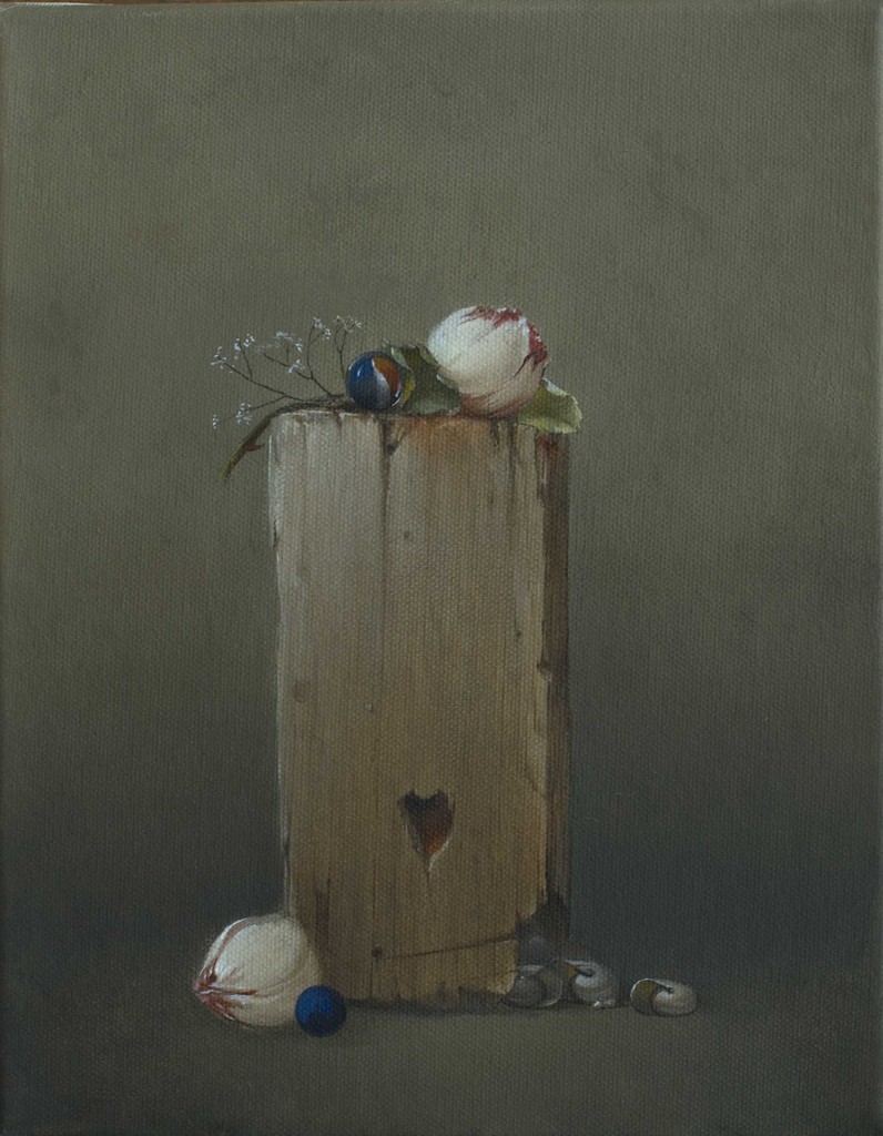 questi oggetti così concreti, illuminati da una luce tersa e addolciti da colori tenui quasi fiabeschi,