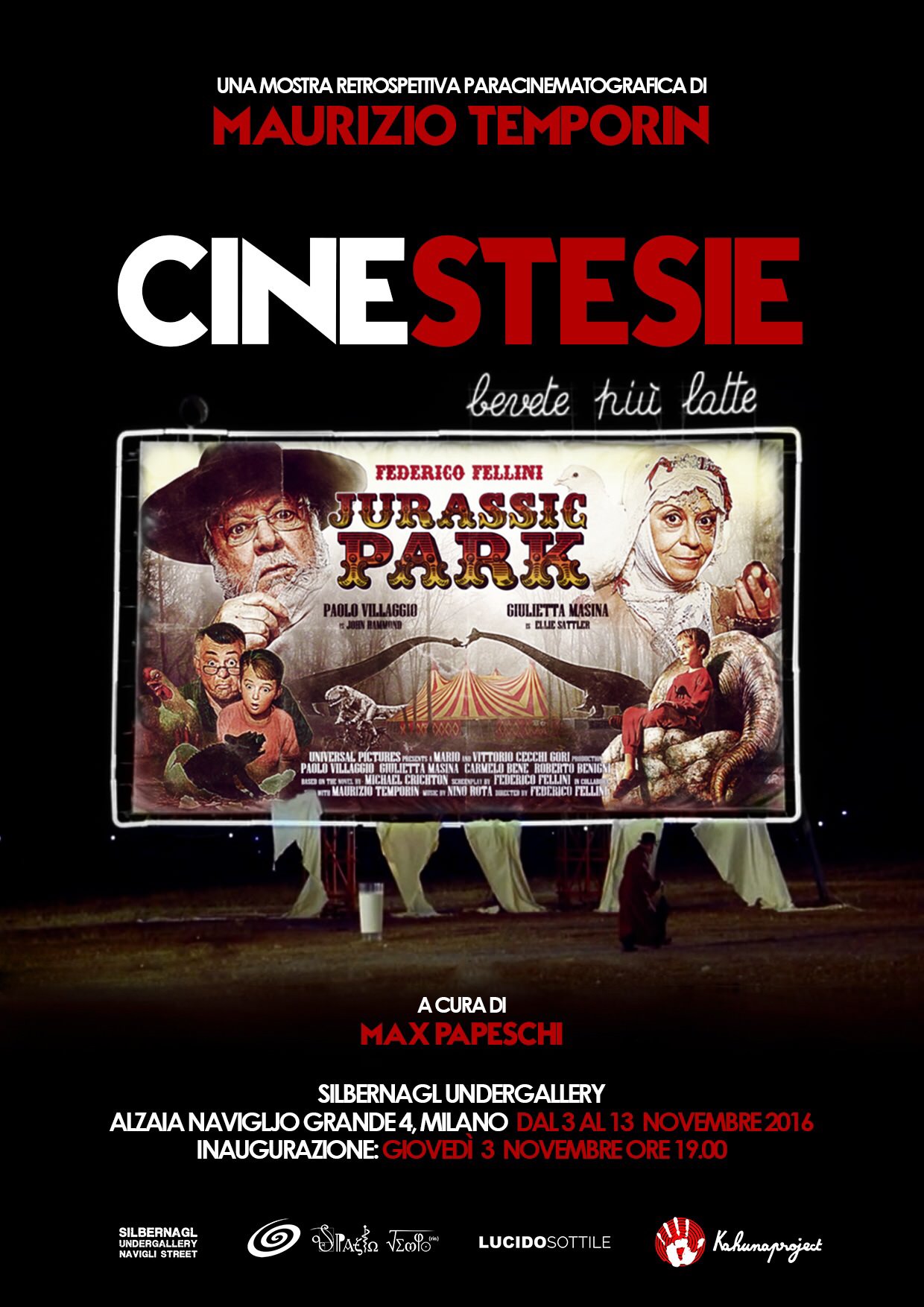 CINESTESIE è il titolo di queste particolari opere create da Maurizio Temporin e propos- te da Silbernagl Undergallery in una mostra-retrospettiva-paracinematografica curata da Max Papeschi.