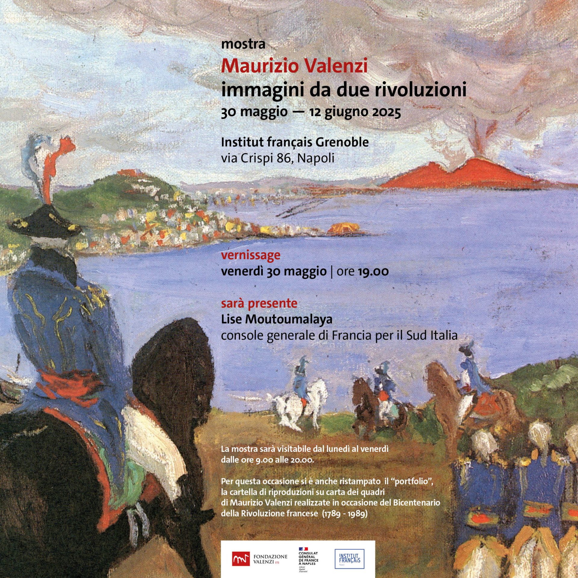 Il vernissage con la presenza della Console Lise Moutoumalaya si svolgerà venerdì 30 ma la mostra sarà visitabile dal 30 maggio al 12 giugno dal lunedì al venerdì dalle ore 9 alle 20 e consiste in 22 tavole che riproducono le opere di Maurizio Valenzi prodotte in occasione del Bicentenario della Rivoluzione francese (1789 - 1989) ed esposte per la prima volta al Palais de l'Europe di Strasburgo nel 1989. Le pitture illustrano prevalentemente momenti della Rivoluzione Partenopea del 1799.