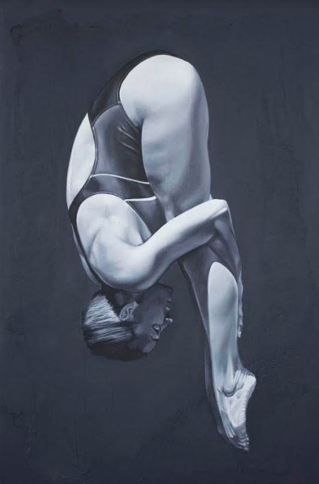 Anche le opere pittoriche dell'artista modenese, tutte rigorosamente in bianco e nero per meglio porre l'accento sui particolari anatomici e senza un'ambientazione chiaramente definita, mettono in scena corpi nell'attimo in cui si contraggono e si tendono in uno sforzo agonistico piuttosto che ludico, mentre sembrano seguire un loro movimento ritmico ed esaltare con la loro pregnanza muscolare e tagli visivi quasi cinematografici il fascino indiscutibile della figura umana in azione.