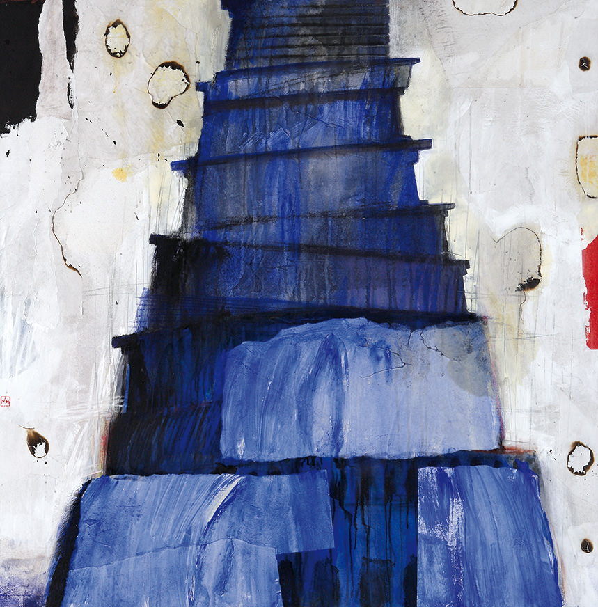 Per Mauro Magni si deve parlare di nuovi tracciati, formali e iconografici, pur rimanendo ancorato ad una disciplina di visione che ha reso il suo percorso estetico–semiotico sempre conformato all’idea di sincerità in pittura. Magni si è, in questi ultimi dieci anni, diretto verso la ricerca di una soluzione impellente dei malesseri suoi e del mondo, descrivendo ossessivamente e per cicli le Montagne, prima, (suoi e nostri Montagne Sainte Victoire e Fujiyama), le Torri dopo, dal colore, pieno e spesso invadente, al bianco e nero, e infine gli incendi pensati come purificazione. Le seconde declinate nella vasta serie delle Torri di Babele (Nella confusione di Migdal, datato 2012, è il primo grande quadro del ciclo). "Nelle Torri scrive Sissi Aslan in catalogo il nostro artista maschera, ancora una volta, lo stordimento del conoscere e del superare nella dimensione iniziale dell’oggetto e della narrazione. Con ciò voglio dire che Magni segue un percorso di reiterazione ossessiva partendo, sempre, dalla rappresentazione naturale per concludere tale percorso seriale nella visionarietà. La grande tela Nella confusione di Migdal (2012) è solo l’inizio del cammino. E non solo di tale reiterazione ma, e soprattutto, della visceralità della visione via via sempre più dominante ... Tutto è caos silente, ossimoro che serve per indicare esattamente il pensiero di Magni connesso al plurale della storia ma direi di tutte le storie. In effetti tutte le opere di quest’artista sono desolatamente silenti e mai percepibili come azione futura, semmai come passato agito meditazione su questo, forse come futuro possibile e desolante" (da Sissi Aslan, Sulla linea dell’orizzonte, acqua aria terra fuoco). Relativamente al percorso iconografico di Magni Alberto Gianquinto scrive "Il monte si trasforma per diventare torre: torre di Babele, che si arricchisce di blisters, i contenitori in plastica di medicinali, opalescenti ai mutamenti della luce, sorta di alveari dei malanni del mondo, che necessita anche di placche di sostegno alla fragilità del suo essere e delle sue strutture sociali. Strutture complesse, fino ad architetture di forma quasi romanica, sovrastate da gabbie e antri, su un accenno di mare (o di lago), che è anche traccia di un orizzonte, indice di spazio tridimensionale. ... Poi c’è Android’s Dream, altra torre ormai quasi azteca e torre infine che si infiamma, vulcano di una società apocalittica, che si autodistrugge. La sintassi costruisce qui anche sul nero, con antri e gabbie e luci di contrasto, che mettono in campo strutturazioni bruegeliane. Svolta positiva, compare il fiore di loto e, dopo un bianco monolitico, quasi concettuale e granitico, la torre assume quasi forma e dimensione di pagoda, dove i colori si fanno preziosi nell’argento e nell’oro" (da Alberto Gianquinto, Natura che tramuta e narra lo spessore dell’inconscio).
