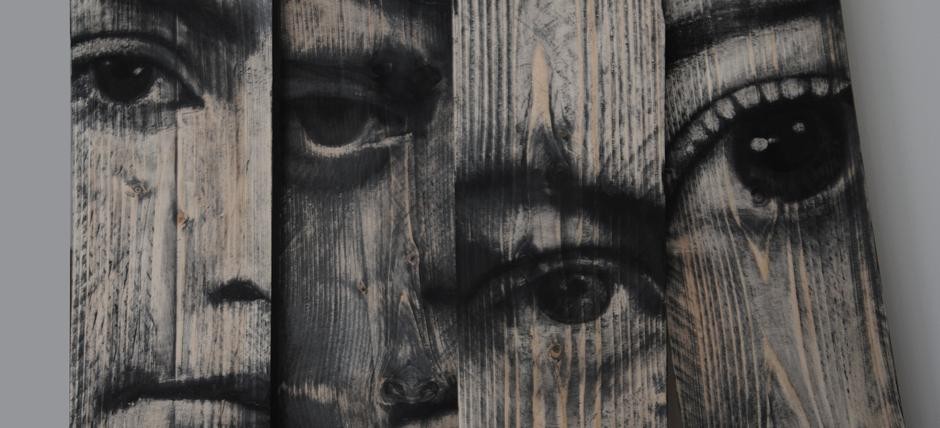 Il percorso si snoda infatti tra piccoli e grandi ritratti, realizzati su tavola carbonizzata graffiandone la superficie, facendoli così emergere dall'oscurità del nero.