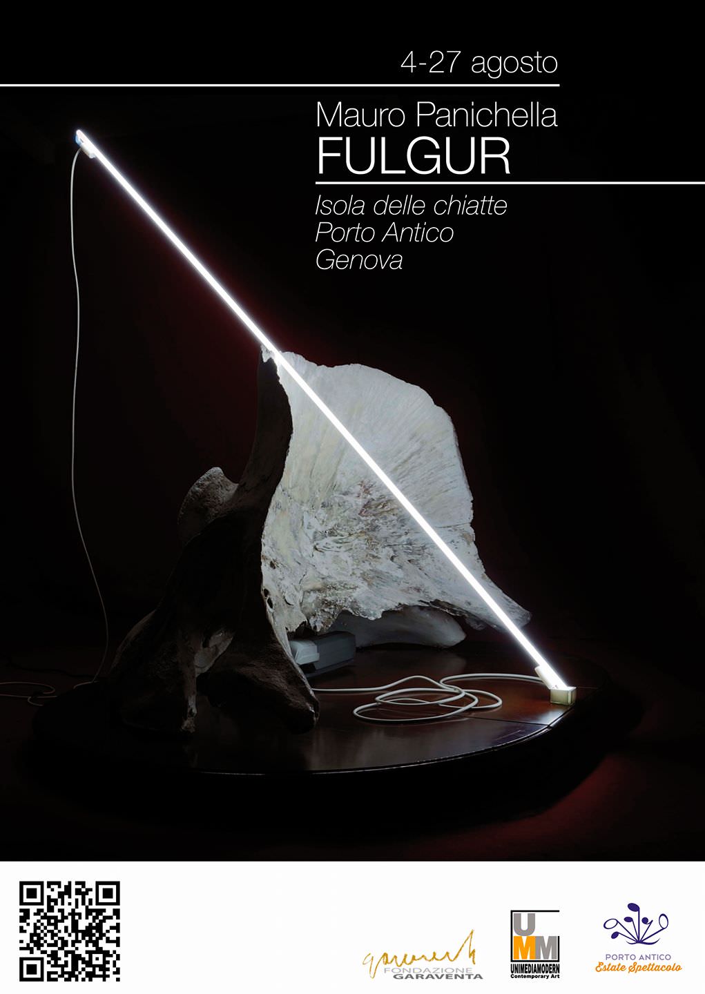 Venerdì 4 agosto 2017, dalle ore 21.00, presso l’Isola delle Chiatte al Porto Antico di Genova verrà inaugurata l’installazione FULGUR, realizzata da Mauro Panichella. L’evento sarà accompagnato dall’esecuzione di Achab’s song, composto da Massimo Pastorelli ed eseguito da Simona Merlano.