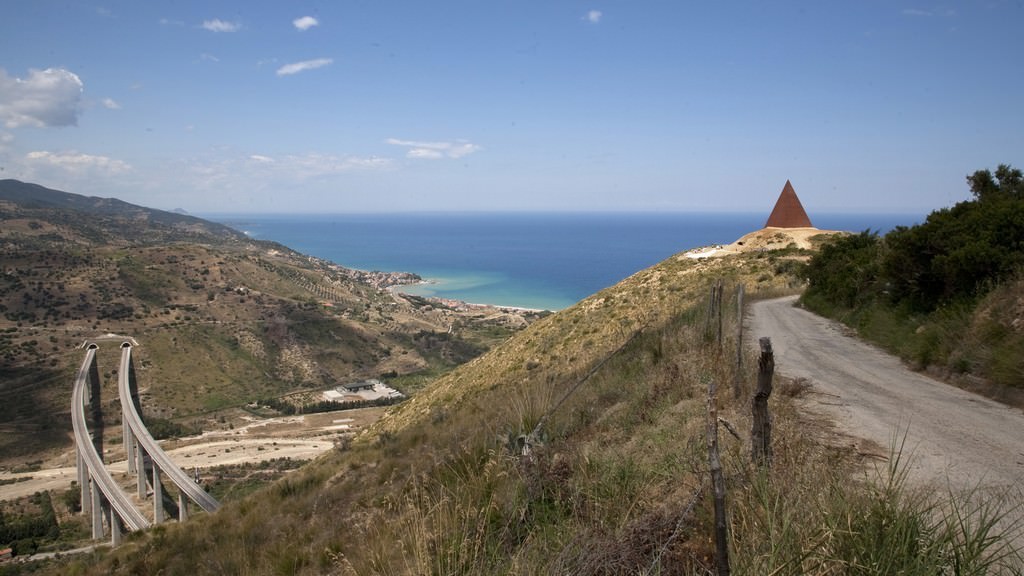 Lì sorge la Piramide – 38° Parallelo, l’opera imponente di Mauro Staccioli - alta 30 metri, la cui costruzione è durata ben 2 anni e mezzo – che sintetizza la coesistenza degli opposti. Questa geometria perfetta rappresenta un invito a meditare sul nostro destino di uomini in lotta tra immanenza e trascendenza, tra materia e spiritualità, e lancia il monito a non uniformarsi all’appiattimento morale di una società che - sottomessa alla dittatura del consumismo - ha smarrito ogni senso di bellezza, ogni ricerca di giustizia.