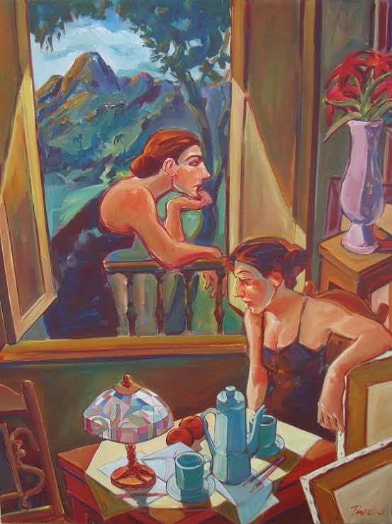 Le grandi tele di Mauro Tambeiro danno voce e forma alle emozioni e alla sensualità, diventano autentici scenari che raccontano l’incanto della musica, la passione del ballo, il ritmo della vita notturna
