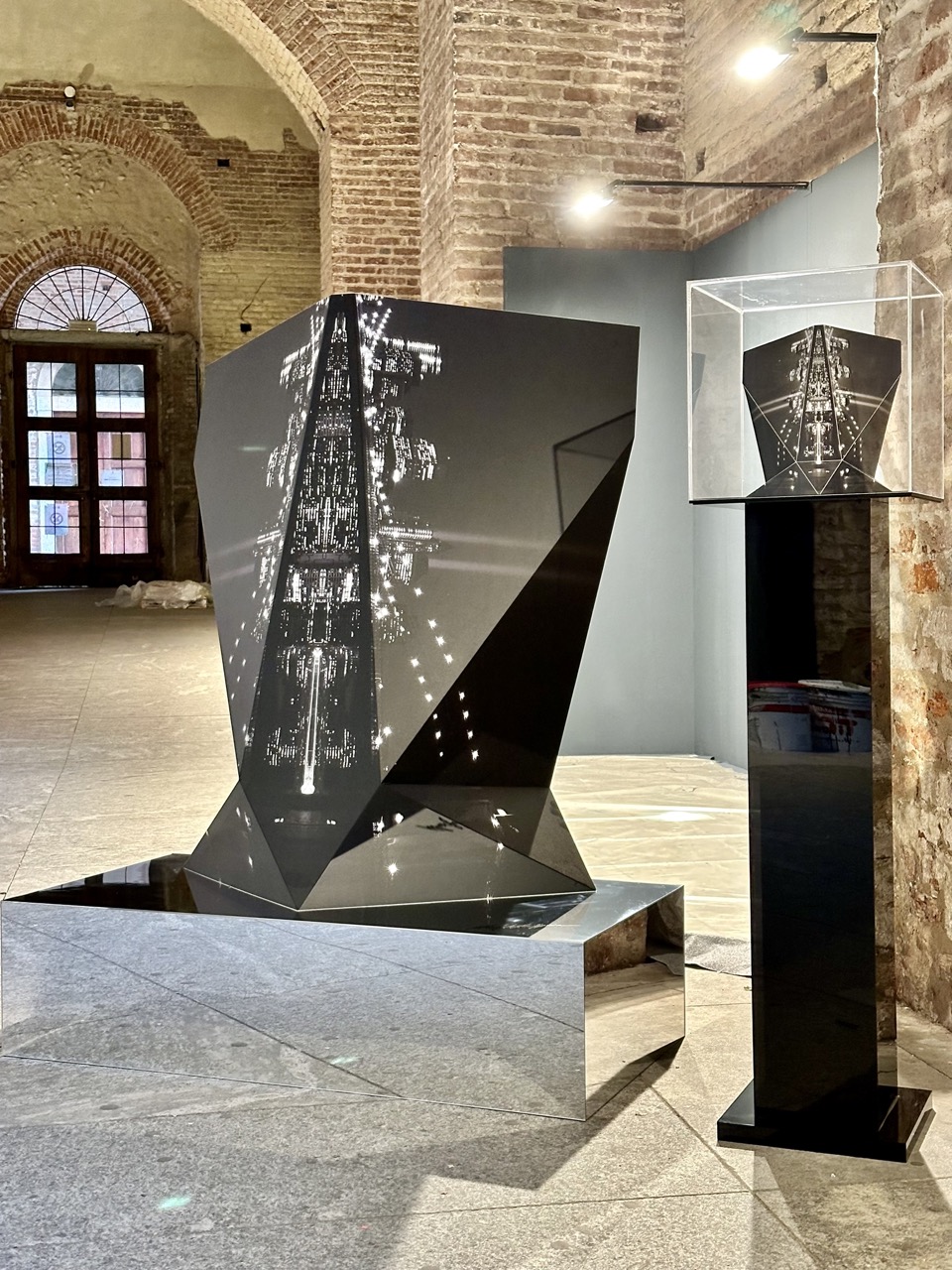 Le opere esposte sono state realizzate con un materiale d’eccellenza “ DIBOND®️ mirror ” in partnership con 3A Composites GmbH Azienda Tedesca Leader Mondiale di produzione di materiali per #Display #Comunicazione #Design e #Architettura IG @3acdisplayeurope .