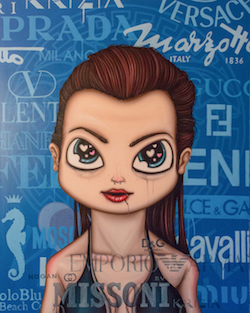 La mostra sarà una bella e proficua serie di 30 opere, che per origini diverse ed evoluzione, fanno comprendere bene al collezionista attento, il percorso dell’artista. Si parte in ordine cronologico dal 2010 con “Medusa”, dipinta su legno, la primissima opera della serie “Les Soucreries” tutta esaurita. Del 2012 alcune opere della serie Circus, tutte pubblicate su catalogo della storica galleria Davico di Torino, un casellario di personaggi Manga Pop, ritratti in salsa circense. Sempre del 2012 una bella selezione di sexy cartoon-eroine come Yuki Kei e Simone Lorenne, che con la loro sensualità è sviluppato ed estremizzato l’atteggiamento erotico giapponese, fatto di magrezza, fanciullezza e grandi occhi blu! Del 2014 della serie Sistema Kunrei, alcune opere direttamente ispirate al più classico Giappone che sono state la partenza per una nuova evoluzione tecnica oltre che stilistica.