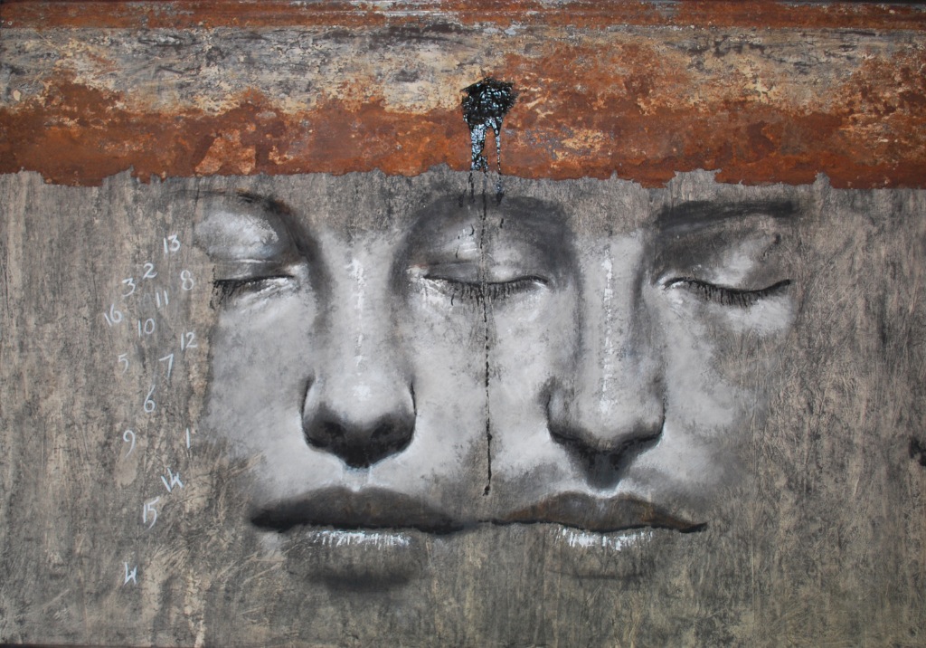 Mnemosyne, Adamo ed Eva, Materia, As above so below (l’ermetico Così sopra come sotto) e il potente Blowhole che emerge come un soffio di vapore dal metallo del suo supporto, sono le icone dell’indagine di questo autore. Si tratta di icone più che di corpi, di tracce semantiche più che di volti(...) suggestioni, silenzi e apparizioni isolate.