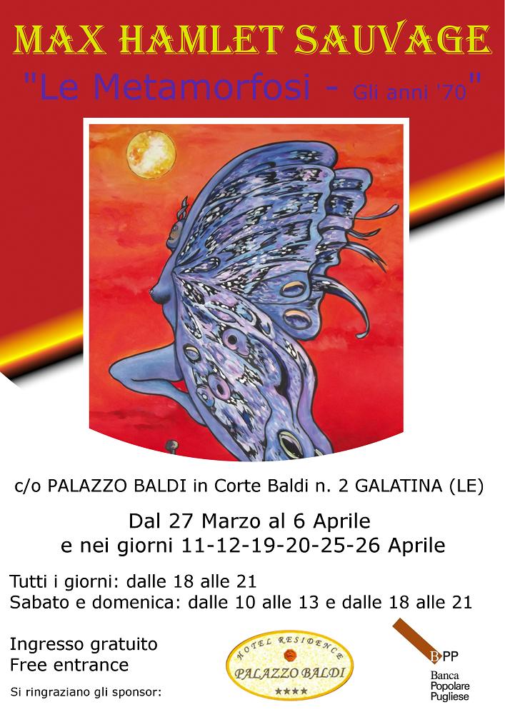 Personale dell’artista contemporaneo Max Hamlet Sauvage che, in anteprima nazionale, presenterà le sue opere del ciclo “Le Metamorfosi” nella splendida dimora storica di Palazzo Baldi a Galatina (LE).