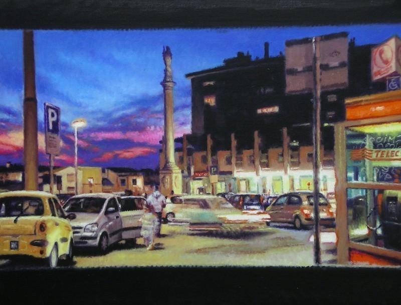 pittura macchiaiola di cui è permeato l'ambiente labronico , dopo la sua prima personale (1982 a Livorno), in cui sperimenta, attraverso una pittura di sapore iperrealista, il primo approccio ad atmosfere cinematografiche, comincia a viaggiare, vivendo di pittura. Nell'incredibile estate del 1990 affitta un atelier a Porto Rotondo,l'amore per l'isola non lo ha più abbandonato...da allora vive e lavora in Sardegna