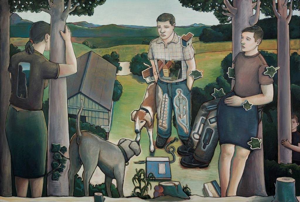 Realizzati nell’arco di un anno, i dipinti insistono su un pallido tonalismo e una linea