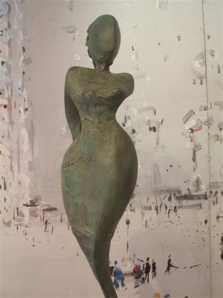 Ed è il corpo femminile il protagonista assoluto dell’esposizione: plasmato nelle sue linee essenziali, in un susseguirsi di forme rotonde nelle quali si perde ogni spigolosità. Tutto è morbido, della stessa avvolgente consistenza di un abbraccio sottinteso con la materia. Nelle opere di MaxSolinas non si respira la durezza dello scalpello ma la levigata tenerezza di una carezza, quasi che l’artista avesse realizzato le sue opere sfiorandole appena. E’ il corpo femminile che diventa immagine totemica di una fusione naturale e spontanea con ogni realtà vivente, frutto e genesi di un ciclo vitale cui rimandano con sensibile incisività la sfericità delle forme. Ed anche la pietra, il legno il bronzo e il ferro diventano materiali eletti, vivi, la cui durezza si permea di effluvio vitale, in una trasformazione che ha in se la sacralità di un gesto creativo che nasce da una comunione profonda ed intensa con l’intero universo vivente.