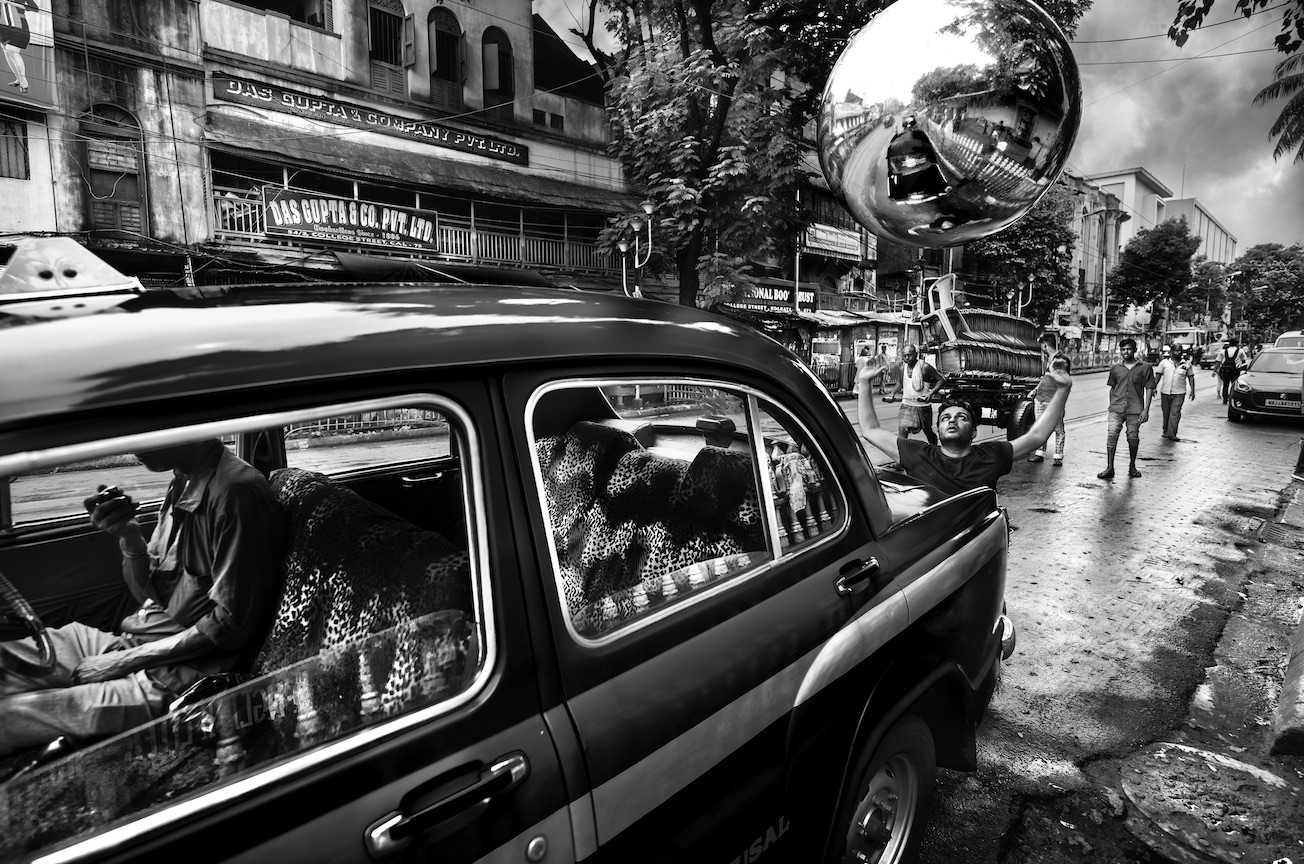 “La mia passione per il reportage d'arte si è ora orientata verso il tema del cambiamento climatico. Ho pensato di ampliare il mio recente progetto "Witness” iniziato nel 2018 nei dintorni di Mumbai e Kolkatta. In queste immagini si trova spesso una sfera. Le persone la guardano